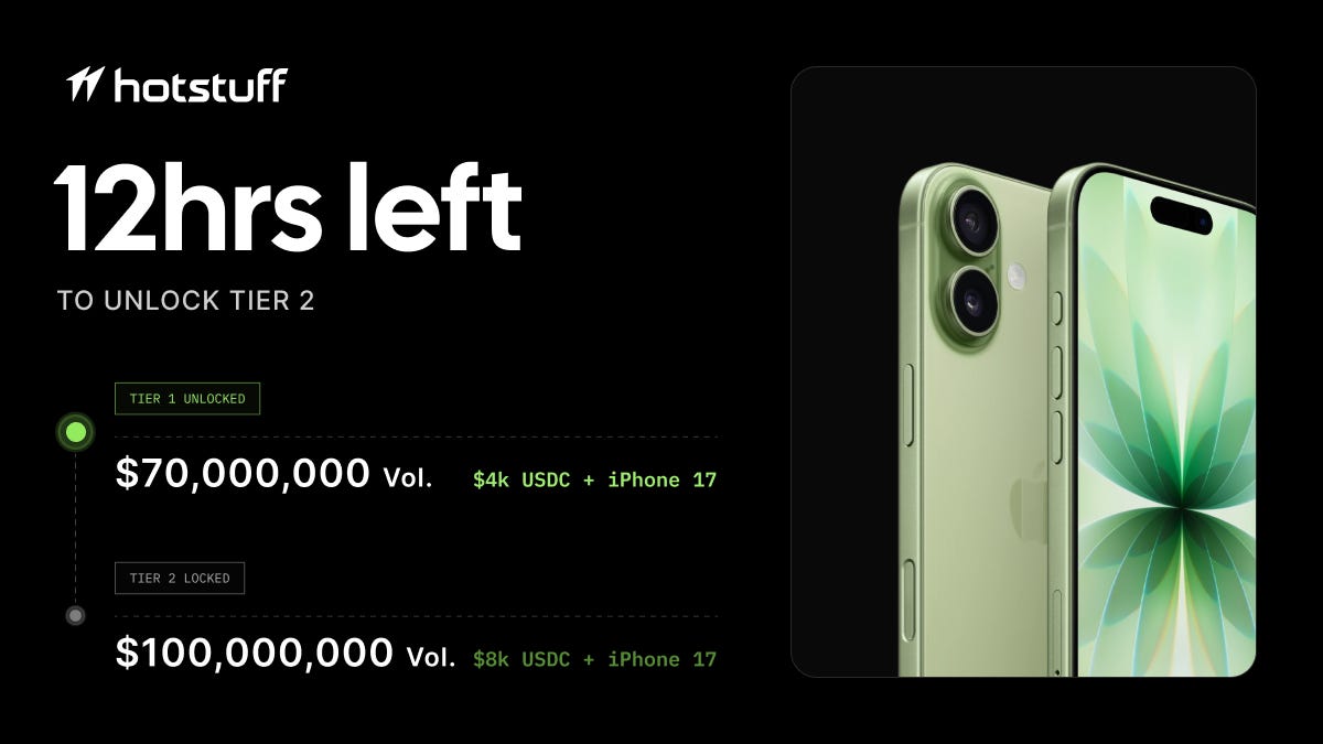 The total volume on the platform during this period has already crossed $70 million, unlocking the Tier 1 for rewards, which includes $4,000 and an iPhone 17. The rewards will be distributed across the top 25 users on the leaderboard.