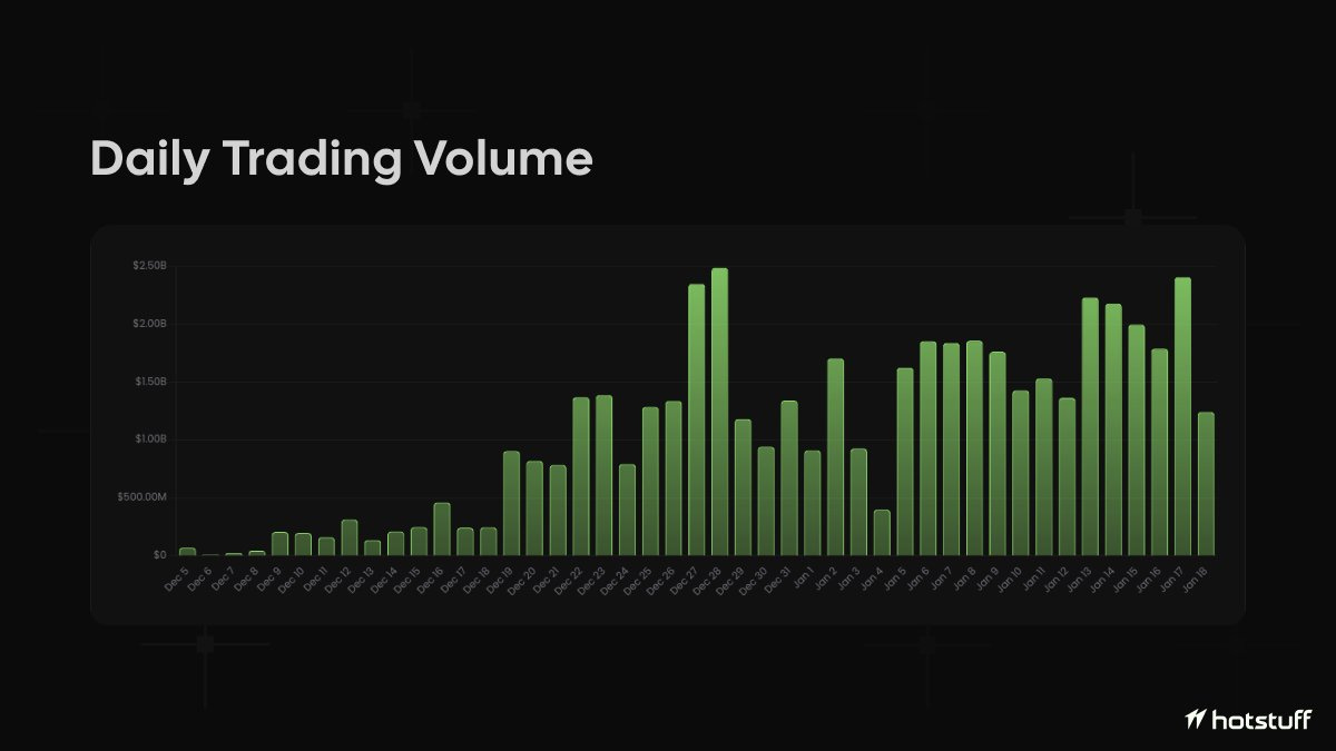 Post-December 15th, volumes doubled while active trader count barely moved. >$500M daily with only ~1,000 additional traders.